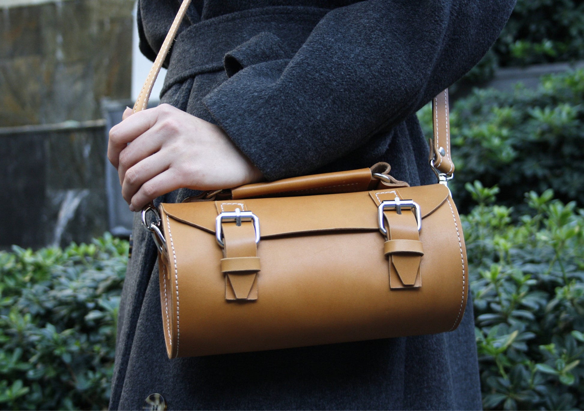 Hakiki Deri Kadın El Çantası – El Yapımı Silindirik Tasarım Premium Çanta