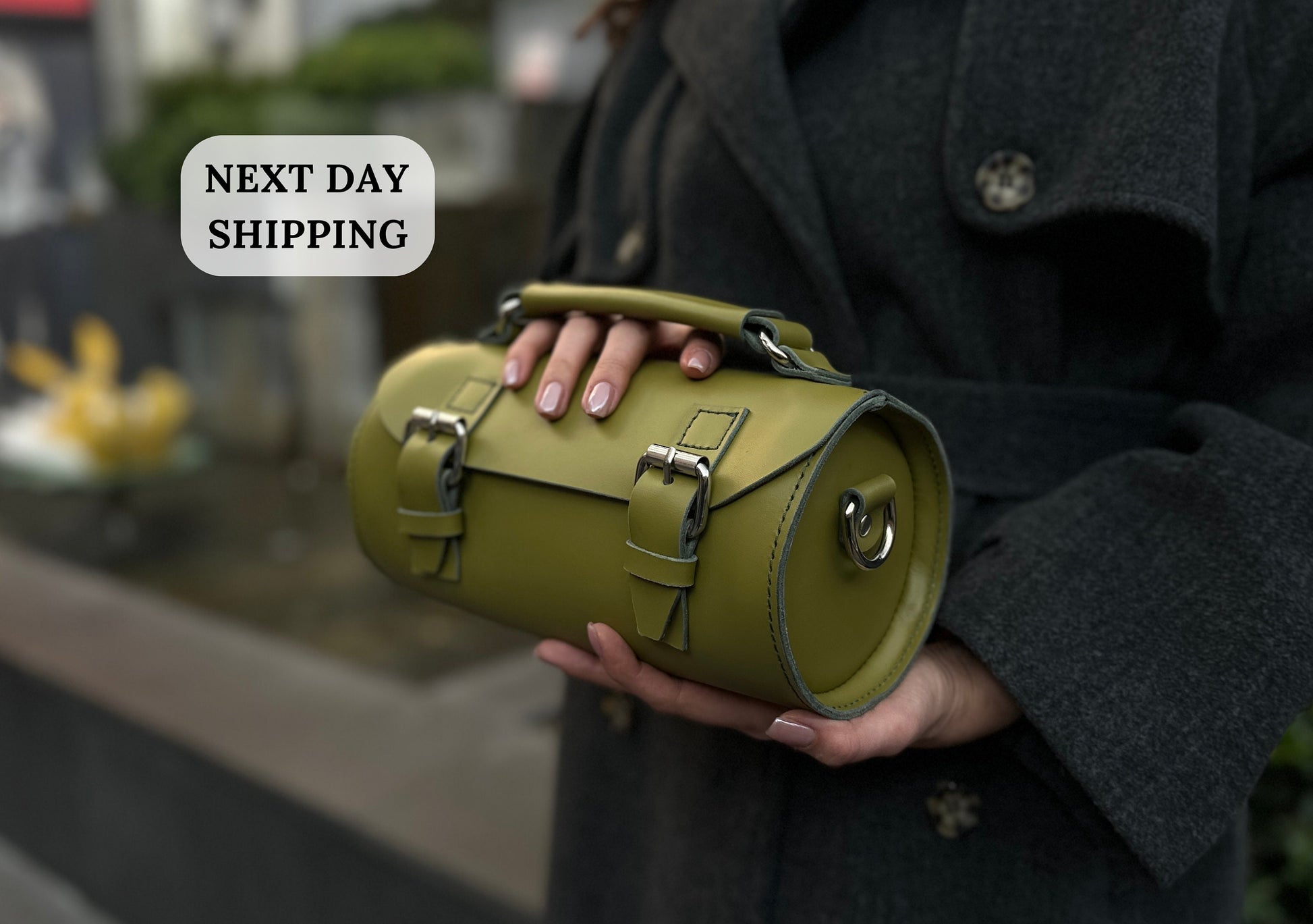El işçiliğiyle üretilmiş hakiki deri kadın el çantası. Zamansız silindirik tasarımı ve premium işçiliğiyle günlük kullanım ve özel kombinler için şık bir tamamlayıcı.
